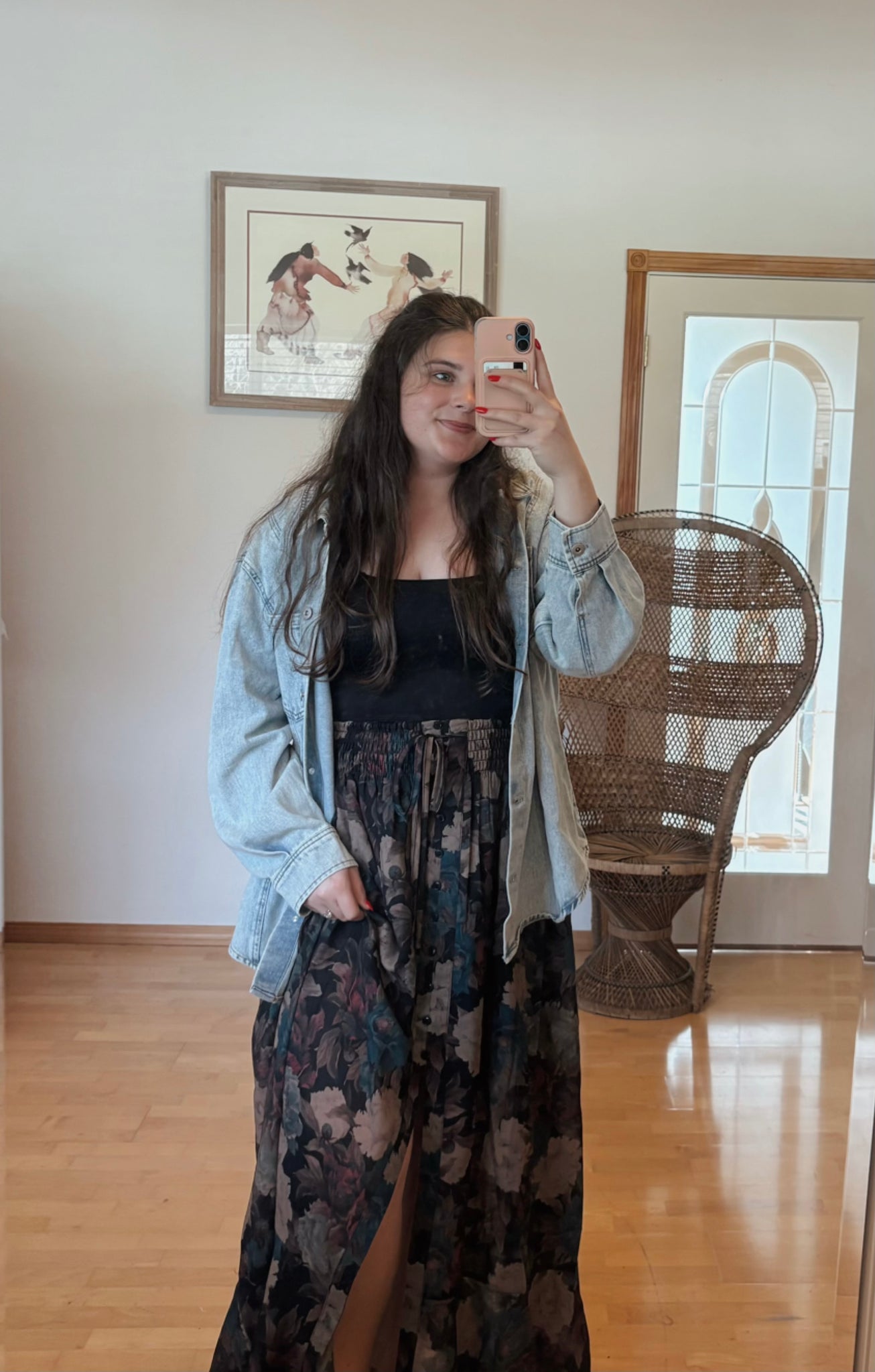 ~ Loose fit maxi skirt with button front closure and a front slit